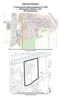 Zusätzlich kann die 5. Änderung des Bebauungsplanes Nr. 05/93 Mischgebiet „Gebesee Süd“ der Stadt Gebesee im Internet auf der Seite des Thüringern Viewer eingesehen werden.