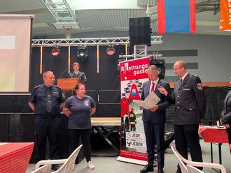 Stephan Zeise und Daniel Kügler wurden zu Löschmeistern befördert, Anja Ragab Hussein zur Oberlöschmeisterin.