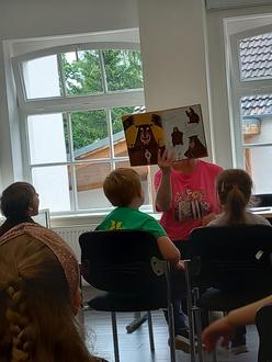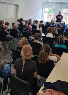 In den letzten Monaten haben sich die Vorschüler aus den Kindergärten Gebesee, Ringleben und Walschleben mindestens 1x im zum Vorlesen, Stöbern, Austauschen und Ausleihen getroffen. Auf unserer gemeinsamen Abenteuerreise haben die Kinder viele Dinge erfahren und ausprobieren können. Da es zur Tradition geworden ist, wollten wir auch in diesem Jahr mit einem Abschlussfest, welches am 06.06.2025 im Veranstaltungsraum der Stadt Gebesee stattfand, für die Vorschüler dieses Projekt abschließen. Zu der Veranstaltung wurde Tom Dewulf eingeladen, welcher uns wirklich eine einmalige, tolle Vorlesung seines Buches „Kuki - gibt nicht auf“ darbietet. Nach der Vorlesung bastelten wir noch gemeinsam und zum Ende gab es für jeden noch ein Geschenk aus der Bibliothek.