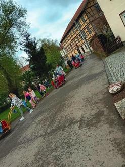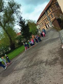 Im Anschluss daran ist der ganze Fröbelkindergarten Gebesee‚ egal wie alt,zum gemeinsamen Frühlingsspaziergang aufgebrochen. Der Einklang zwischen Natur und Spiel war unserem Herrn Fröbel ein großes Anliegen.