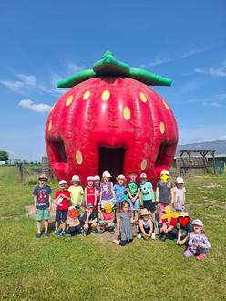 Die Riesen und Zwerge vom Kinderland Ringleben fuhren am 17.06.2025 mit dem Traktor von Steve Nessel zum Erdbeerhof nach Gebesee.