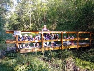 hat sich am frühen Morgen am Waldrand versammelt, um einen erlebnisreichen Tag im Weißbachtal zu verbringen.
