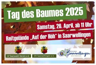 Der Saarwald-Verein Landesverband lädt gemeinsam mit dem Ortsverein Saarwellingen und der Gemeinde Saarwellingen zum "Tag des Baumes" ein. Die Veranstaltung findet am Samstag, 26. April 2025, ab 11:00 Uhr auf dem Gelände des Reit- und Fahrvereins Saarwellingen (Schwarzenholzer Straße 38) statt.