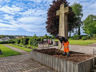 Insgesamt 1.691 Rasengräber muss das Gärtnerei-Team auf den vier Friedhöfen mähen und pflegen.