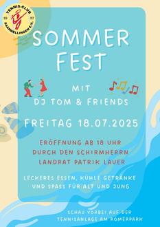 Es ist wieder soweit - der Tennis-Club Saarwellingen lädt ein zum großen Sommerfest! Freut euch auf einen unvergesslichen Abend voller guter Musik, leckerem Essen, kühlen Getränken und jede Menge Spaß für Groß und Klein.