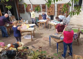 Mit der Ausstellung „KUNST TRIFFT NACHHALTIGKEIT“ präsentieren sich außerdem mehrere KünstlerInnen des Workshops Fromstuff2art im Kultur/Ort Atelier Andruet. Seit gut 8 Jahren findet im Atelier jeden ersten Sonntag im Monat ein Kurs -und Malworkshop statt – bei gutem Wetter im Hof, andernfalls in den Innenräumen. Derzeit kommen bis zu 13 TeilnehmerInnen zu den monatlichen Treffs. Zu dem Thema „Nachhaltigkeit“ entstehen dann unter dem Coaching von Mario Andruet viele unterschiedliche Kunstgegenstände.