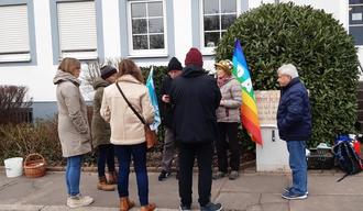 Nach dem Gedenken folgten eine Diskussion zur aktuellen Weltlage und die Reinigung der Stolpersteine. "Das Erstarken rechtsextremer Tendenzen muss uns Ansporn sein, immer wieder zu erinnern", so Andruet, die sich mehr Beteiligung aus der Bürgerschaft gewünscht hätte.