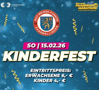 Am kommenden Faasendsonntag, 15.02.20269, steht ab 15 Uhr das große Eventzelt in der Wilhelmstraße beim Kinderfest Kopf, welches von der Karnevalsgesellschaft Rot-Weisse-Funken Saarwellingen e.V. in Zusammenarbeit mit Experience Event veranstaltet wird.