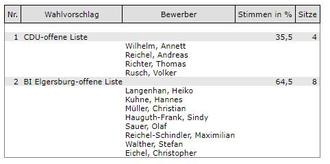 Der Gemeindewahlausschuss der Gemeinde Elgersburg hat in der öffentlichen Sitzung am 28.05.2024 folgendes Ergebnis zur Gemeinderatswahl festgestellt.