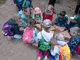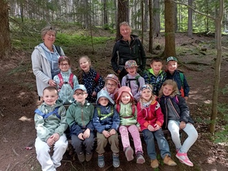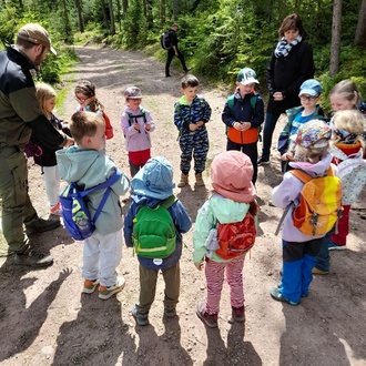 Los ging es mit dem Zug, danach wanderten wir zum Startpunkt. Dort angekommen erhielten wir unseren Waldführer Thomas. Mit ihm ging die Wanderung in den Wald los, wo wir an vielen Stationen Geschicklichkeit, Mut, aber auch unser Wissen über den Wald und die Tiere beweisen mussten. So wurden z.B. Tannenzapfenweitwurf, Balancieren, Tauziehen und Holstammtransportieren gemacht. Am lustigsten fanden wir die Station, wo ein Baummarder ein Eichhörnchen fangen sollte und es nicht einholen konnte, weil wir Kinder dem Eichhörnchen geholfen haben.