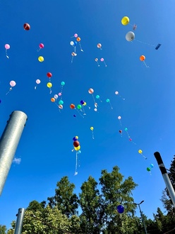 Höhepunkt und Abschluss unseres Sommerfestes war das Luftballonsteigen. Die Kinder ließen ihre Luftballons mit Bildern, kleinen Nachrichten oder Wünschen in den Himmel steigen. Es war ein wunderschöner und symbolischer Moment, der allen in Erinnerung bleiben wird.