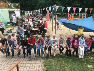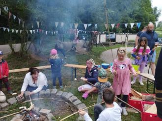 Ein weiteres Highlight war das Übernachten im Kindergarten - die Kids und ihre beiden Erzieherinnen schliefen in einem großen Zelt.