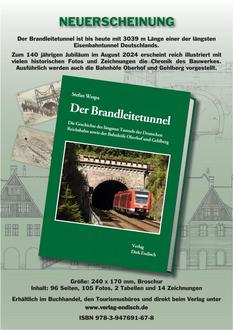 Die ausführliche Geschichte vom Bau des Brandleitetunnels bis zur Gegenwart dieses wichtigsten Bauwerkes unserer Region erfahren sie in meinem neuen Buch. Außerdem wird der Auf- und Abstieg der Bahnhöfe Oberhof und Gehlberg aufgezeigt. Reich bebildert und mit historischen Zeichnungen belegt ist das Werk ein Muss für Eisenbahn und Heimatfreunde.
