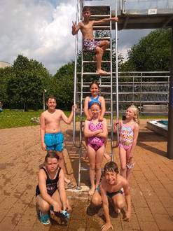 Da zum Ablegen des silbernen Schwimmabzeichens ein Sprung vom Sprungturm gehört, gab es am Freitag auch noch einen kurzen Ausflug ins Geraberger Schwimmbad!