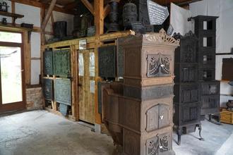 Zu sehen sind gusseiserne Öfen und Ofenpolatten aus 3 Jahrhunderten in der Jägerstr. 12.