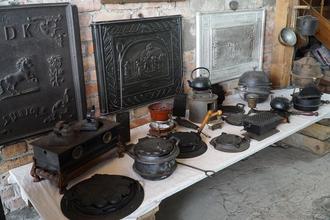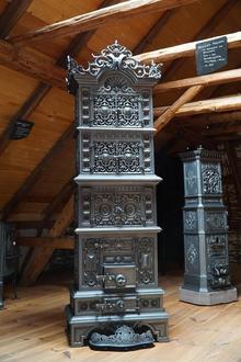 Zu sehen sind gusseiserne Öfen und Ofenpolatten aus 3 Jahrhunderten in der Jägerstr. 12.