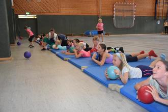 Natürlich sollte aber auch der Spaß klar im Vordergrund stehen, deshalb ging es nach der Kaffeepause zur Freizeitgestaltung über. Denn auch das Kennenlernen der Kinder untereinander, sowie aller Betreuer soll an diesem Wochenende gefördert werden. Dann sind die Berührungsängste bei einem Wechsel in die nächst höhere Tanzgruppe nicht mehr so groß. Deswegen standen nicht nur sportliche Übungseinheiten in der Turnhalle, sondern auch genügend Freispielzeit auf dem Programm. Bei sommerlichen Temperaturen durfte da eine kleine Wasserschlacht nicht fehlen.