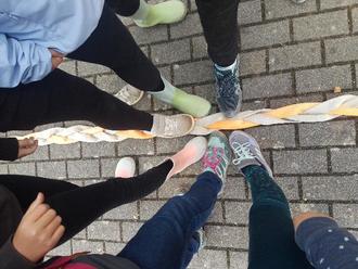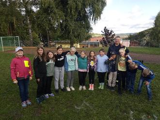 Ein besonderes Highlight bildete die Station „Stiefelweitwurf“, an der Feuerwehrmann Dirk zusammen mit der Klasse 4b für ausgelassene Stimmung sorgte.