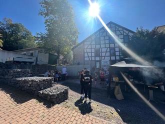 Nach zwei organisatorischen Treffen im Vorfeld wurde am Freitag, den 08.09.2023 angepackt und die Massemühle für den bevorstehenden Denkmalstag gereinigt. In den Tagen zuvor waren bereits Wolfgang Römer und Dieter Ring intensiv damit beschäftigt, defekte Antriebsriemen der Transmission zu reparieren und diese so herzurichten, dass diese sich am Tag des offenen Denkmals bewegt und die Massemühle lebendig werden lässt. Die Dampfmaschine, welche durch Dieter Ring betreut wird, war hier ebenfalls mit eingebunden. Ein großer Dank geht an die Mitarbeiter des Bauhofs, welche in der Vorbereitung den Bereich hinter der Massemühle gereinigt und hergerichtet haben.