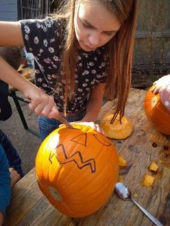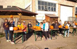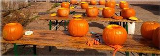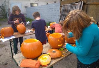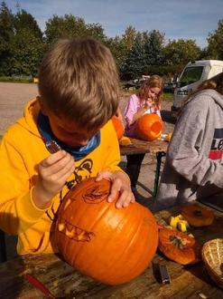Am Freitag wurde es dann im Elgersburg recht aufregend: 20 große Kürbisse warteten auf ihre Schnitzkünstler. Obwohl das Aushöhlen am Vormittag teilweise zur Schwerstarbeit wurde, hatten alle trotzdem viel Spaß.