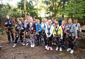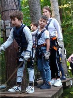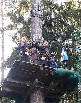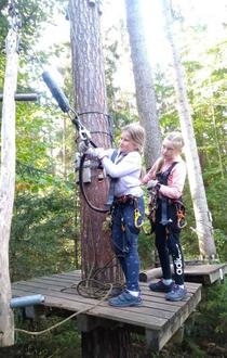 Am Mittwoch startete für 19 mutige Teilnehmer das eigentliche Highlight der Ferienbetreuung: Klettern im Kletterwald Hohenfelden stand auf dem Plan.