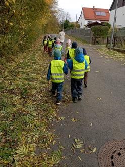 Auch die kühlere Jahreszeit hält die Kinder und die ErzieherInnen nicht davon ab, nach dem Frühstück das Haus zu verlassen, um in Richtung Wald zu starten. Im Gepäck ist immer Obst, Gemüse und etwas zu Trinken für die Kinder, denn Spielen im Wald bringt meist Appetit mit sich.