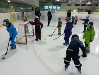 Am Ende der Woche durften sogar alle das Eislaufen mit Eishockeyschlägern probieren und einen Puck ins Tor schlagen. Die Kinder wie auch die Erzieherinnen waren sich einig, dass es eine ganz großartige Woche und für alle ein Gewinn war.