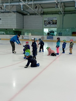 Natürlich blieb es nicht aus, dass auch jeder einmal hinfiel, aber das war nicht von langer Dauer. Die Kinder standen einfach wieder auf und weiter ging die Eislaufpartie. Man merkte Tag für Tag wie die Kinder sicherer wurden und sogar schon kleine Parcours mit Hütchen und Stangen absolvierten.