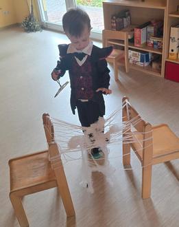 Der Kleinkindbereich feierte an diesem Tag separat in gemütlicher Atmosphäre. Dort wurde besonders auf die Kleinsten eingegangen: Mit bunten Luftballons, Musik und Tanz erlebten sie ihre ganz eigene fröhliche Halloweenparty - ohne zu viel Grusel, aber mit ganz viel Spaß.