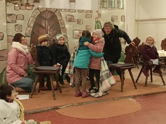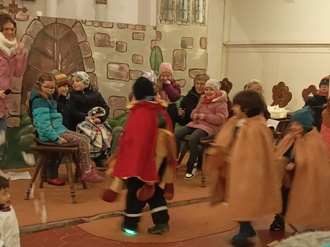 Anlässlich des Martinsfestes trafen sich am 10.11.23 die Kinder mit ihren Erzieherinnen, Familien und Freunden der Kita „Zwergenburg“ in der Elgersburger Kirche. Das traditionelle kleine Theaterstück führte dort die „Wichtelgruppe“ auf. Fleißig einstudiert zeigten die Kinder die Geschichte von St. Martin. Im Anschluss liefen alle gemeinsam mit ihren Laternen in Begleitung der Freiwilligen Feuerwehr Richtung Kindergarten.
