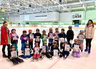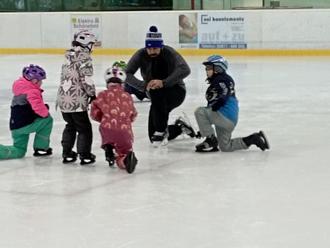Die Kinder übten in der Eishalle Ilmenau spielerisch das Gleichgewicht auf den Kufen zu finden, den Umgang mit den Schlittschuhen und die dazu gehörige Körperspannung zu halten. Am ersten Tag robbten alle zunächst auf dem Eis, um das richtige Fallen und Aufstehen zu erlernen. Dank des Einsatzes der ehrenamtlichen Trainer sowie der Begeisterung der Kinder konnten täglich Fortschritte verzeichnet werden, so dass am letzten Tag sogar eine Runde Eishockey gespielt werden konnte. Außerdem klang der Freitag mit einer Überraschung der Erzieherinnen aus. Es gab Pizza und einen zusätzlichen Spielplatzbesuch nach dem Eislaufen.