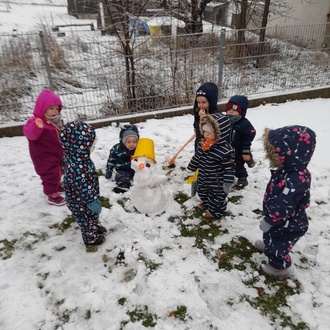 Endlich kamst du geschneit! Um das auszukosten, schnappten sich auch die Kleinsten der Zwergenburg-Krippe in Elgersburg die Poporutscher und versuchten sich auf dem kleinen Abhang im Garten beim Rodeln. Und weil es vielleicht so schnell nicht wieder schneit, wurde auch sofort ein Schneemann gebaut. Alle waren dabei und hatten Spaß an der weißen Überraschung.