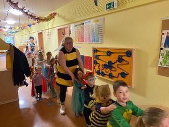 Alle Kinder und Erzieher hatten tolle Kostüme und haben sie im Rahmen einer Modenschau vorgestellt. Anschließend gab es ein leckeres Faschingsfrühstück, um gestärkt in die einzelnen Spielstationen zu gehen. Es waren tolle Stationen dabei, wie zum Beispiel Tanzen, sportliche Spiele oder Instrumente spielen.