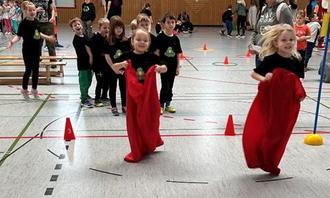 Am Donnerstag, den 15.02.2024 fuhr die Froschgruppe mit dem Zug nach Arnstadt. Dort besuchten sie das Sport- und Spielfest in der Jahn- Sporthalle. An diesem Tag waren sehr viele Vorschulgruppen aus der Umgebung eingeladen um vor Ort bis zu 27 Stationen zu absolvieren. Jede Kindergartengruppe hatte eine Checkliste um abzuhacken, welche Station sie schon bewältigt hatten. Der Tag wurde von dem Maskottchen dem „Muskelkater“ mit einer gemeinsamen Erwärmung begonnen. Anschließend startete für alle Gruppen der Stationsbetrieb. Sackhüpfen, Klettern, das Schwingen an den Ringen, Stelzenlauf, ein Mutsprung, Balancieren, ein Fühlpfad, Rollbretter fahren, und ein Fahrradsimulator waren nur einige Beispiele der vielen Stationen. Über zwei Stunden konnten sich die Kinder ausprobieren und testen was sie schon alles können. Als der Vormittag langsam beendet war, gab es für alle Kinder eine Urkunde und ein Rucksack voller Spielideen die sie mit in ihre Kita nehmen konnten. Nun ging es mit dem Zug wieder zurück in den Kindergarten. Allen Kindern hat dieser Ausflug sehr viel Spaß und Freude bereitet. Durch die sportlichen Leistungen waren alle etwas erschöpft und haben sich nach dem Mittagessen in der Kita noch etwas ausgeruht.