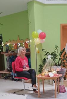 Kurz darauf folgte auch unsere langjährige Erzieherin Ina, die nach 20 Jahren im Kindergarten - zuerst in der Krippe, später dann im Ü3-Bereich - zum 01.02.2025 in den Ruhestand trat. Mit ihrer musikalischen Hingabe und vielen Gitarrenmelodien bereicherte sie den Kita-Alltag. Beide erhielten einen wundervollen Abschied. Die Erzieher und Kinder des Kindergartens Plaue sangen für beide Abschiedslieder. Auch kamen Frau Kerstin Michalski von der Verwaltungsgemeinschaft Geratal, der Bürgermeister Herr Christian Janik sowie der Elternbeirat verabschiedeten sich von beiden.