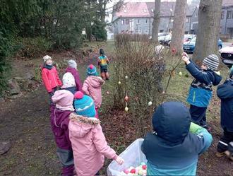 Auch die Kindergartenkinder des Wichtelhauses haben tatkräftig mitgeholfen und die Eier im Lindenpark an die Büsche gehängt. Sie haben sich sehr große Mühe gegeben und zur Verschönerung des Ortes beigetragen.