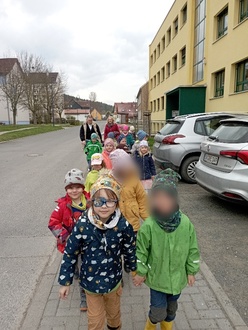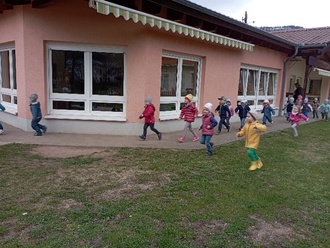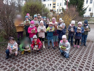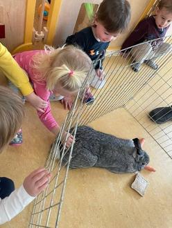 Im Anschluss besuchte uns der Osterhase und versteckte die Osternester. Diese suchten die Kinder an der örtlichen Feuerwehr, im Garten des Kindergartens und die kleineren in den Räumen der Einrichtung.