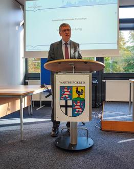 Die Eröffnung erfolgte durch Landrat Reinhard Krebs, der die Wichtigkeit der kommunalen Archive für die Identität und Zukunft des Wartburgkreises hervorhob. Die Bewahrung von Akten, Urkunden, Plänen, Bildern und anderen Unterlagen ermöglicht es, die Entwicklung und Veränderungen in der Region nachzuvollziehen. Landrat Krebs würdigte die unermüdliche Arbeit der Mitarbeiter der Archive und betonte die Bedeutung ihres Engagements. Außerdem gab Herr Steffen Liebendörfer von der Kommunalaufsicht den Teilnehmern gesetzliche Rahmenbedingungen mit auf den Weg.