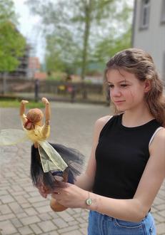 Anna spielt seit drei Jahren Theater und konnte bereits Erfahrungen als Hauptdarstellerin sammeln, zuletzt in einem rein pantomimischen Stück. Für ihre aktuelle Rolle probt sie gemeinsam mit Jeremia Kuntze, der den Zinnsoldaten spielt, mindestens einmal pro Woche. Hinzu kommen Einzelproben mit den anderen Darstellern. „Außerdem übe ich den Text und die entsprechenden Bewegungen täglich, um am Ball zu bleiben“, berichtet Anna. Dabei profitiert sie zum Teil auch von anderen Hobbys, denen die 13-jährige nachgeht. Wenn Anna nicht gerade auf der Bühne steht, geht sie reiten, spielt Klavier oder tanzt Ballett.