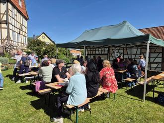 Bei bestem Frühlingswetter kamen zum Gemeindefest unlängst zahlreiche Besucher/innen im wunderschön blühenden Garten unseres Pfarrhauses zusammen. Begegnungen an geschmückten Tischen mit Gesprächen und Selbstgemachtem „süß und herzhaft“ taten wohl. Das Konzert in der Katharinenkirche mit dem Gospelchor aus Wildeck „Colours of Music“ (Deutsch „Farben der Musik“) erfreute mit einem breiten musikalischen Spektrum von Gospels, Musical-Melodien und Pop-Songs bis hin zu modernen christlichen Liedern zum Zuhören und Mitsingen. So lernten wir den Popkantor Matthias Weber kennen. Mit dabei waren viele Mitwirkende aus Gerstungen und der Region. Für Familien gab es Kreatives zum Basteln der Friedenstauben für die Vorstellungen „Kunst auf dem Weg“ im Juni und ein Quiz rund um die Katharinenkirche. Vielen Dank besonders für das enorme ehrenamtliche Engagement.