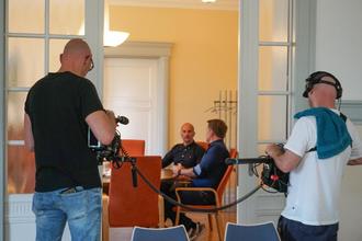 Nach unserer Begegnung ging es für das Fernsehteam weiter zur früheren Schule Christopher Wittichs, dem Philipp Melanchthon Gymnasium Gerstungen. Kurz vorher begegnete er zufällig einem früheren Lehrer aus seiner Schulzeit - Martin Boehlau-Godau - im Rathauspark.