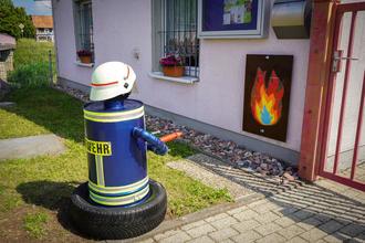 Beim Kindertagsfest der Freiwilligen Feuerwehr Gerstungen wurde nicht nur gefeiert, sondern auch eine tolle Initiative vorgestellt! Vor dem Feuerwehrgebäude steht ein schlichter und unansehnlicher Versorgungskasten - doch die Feuerwehr hatte eine kreative Lösung: Aus einer alten Tonne entstand ein Feuerwehrmännchen, das nun einen Brand am Gebäude „löscht“. Die selbstgemalte Flamme erinnert an die wichtige Aufgabe der Feuerwehr und soll zugleich die Jugend für dieses unverzichtbare Ehrenamt begeistern.