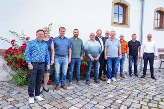 Feierliche Vereidigung im Marksuhler Schloss - Bürgermeister Daniel Steffan (rechts) mit den neuen und alten Ortsteilbürgermeistern.