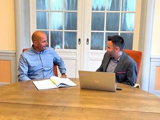 Bürgermeister Daniel Steffan und Gebietsleiter Glasfaserausbau der Deutschen Telekom Markus Pitters