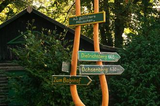Eins von mehreren NATURPARK-Toren „Thüringer Wald“ im Gemeindegebiet GERSTUNGEN ist u. a. hier auf einer Anhöhe bei Marksuhl von der Naturpark-Meisterei aufgestellt worden.