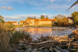 haben haben sich Ende Oktober an der Wehranlage für kurze Zeit einige Sonnenstrahlen durch das graue Herbstwetter gekämpft und sorgten für eine goldene, spätherbstliche Stimmung. Über das Jahr hinweg hat sich jede Menge Treibholz angesammelt, das wohl erst mit dem nächsten Hochwasser wieder verschwindet.