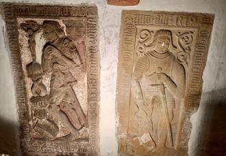 Grabplatten aus Sandstein des Adelsgeschlecht von Boineburg im Innenraum der Katharinenkirche