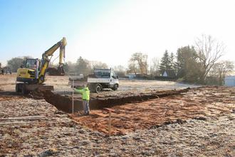 Auf einer zweiten, nachgelagerten Teilfläche nahe des Werratalradweges ist ein Bolzplatz vorgesehen. Diese Maßnahme wird in Eigenregie durch den gemeindlichen Bauhof umgesetzt. Gegenwärtig modellieren und terrassieren die Kollegen des Bauhofes das Gelände. Mit schwerem Gerät wird der Untergrund vorbereitet, sodass der Platz nach und nach weiter ausgebaut werden kann.
