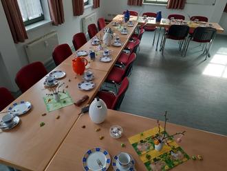 „Ich habe seit meiner Schulzeit diese schönen Frühlingslieder nicht mehr gesungen.“ - so freute sich eine Besucherin zum Kaffee-Gottesdienst. Bei selbstgebackenem Kuchen, an liebevollen Kaffee-Tafeln, mit Akkordeon-Begleitung, Andacht und Texten zu Passion und Frühling, Begegnungen und Gesprächen kamen Gemeindeglieder zusammen. Auf Wunsch wurden Ältere dafür von zu Hause abgeholt. Es war kaum noch ein Platz frei ob in Gerstungen, Untersuhl oder in Sallmannshausen mit Neustädt. Vielen Dank.