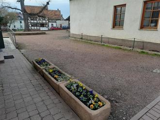 Neu angepflanzt: Anwohner pflegen und gießen wieder regelmäßig liebevoll die verschiedenen Pflanzenkübel rund um den Kirchplatz Untersuhl. Vielen Dank!
